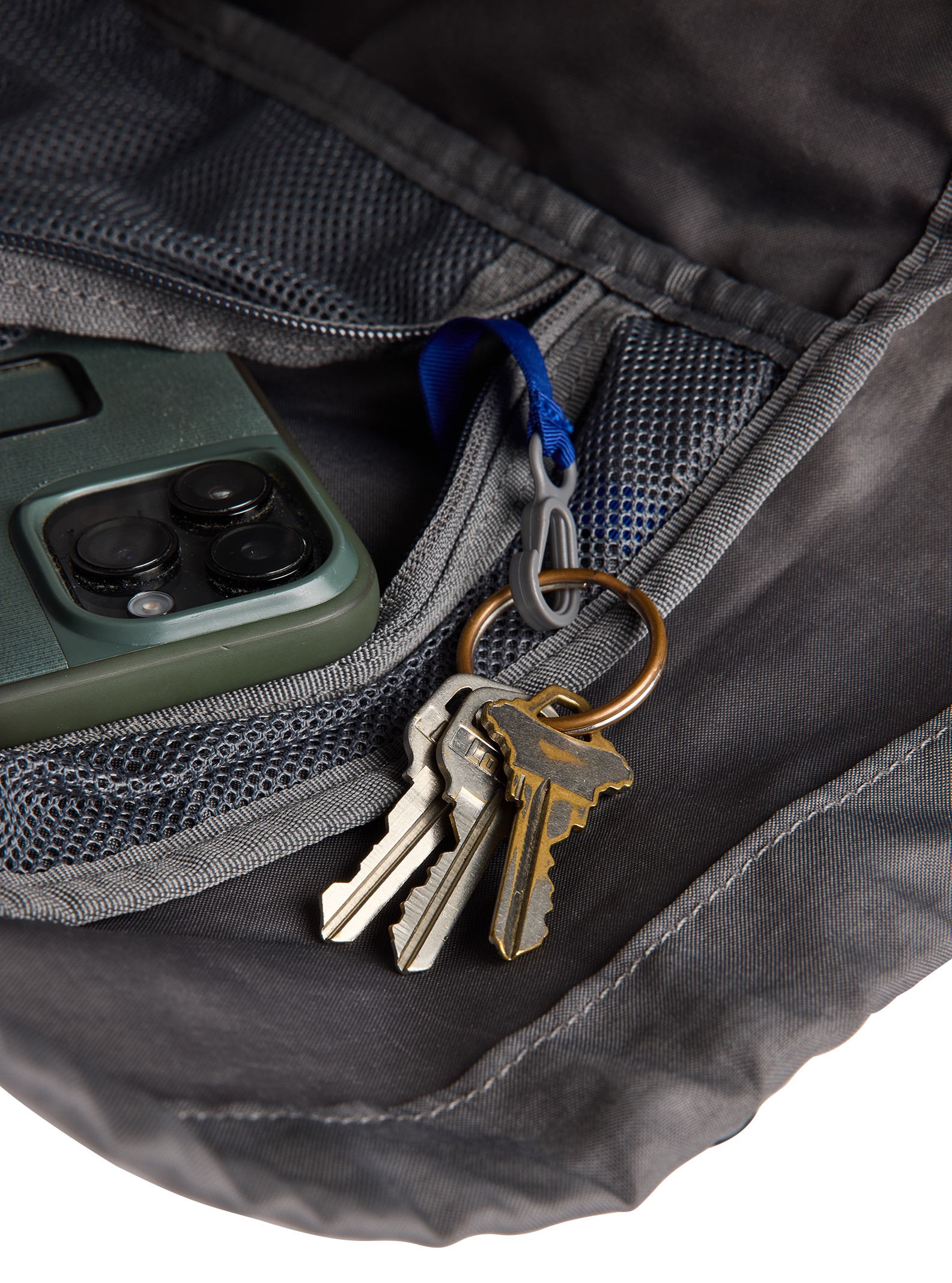 Vnitřní síťová kapsička s poutkem na klíče a několik dalších kapsiček na drobnosti